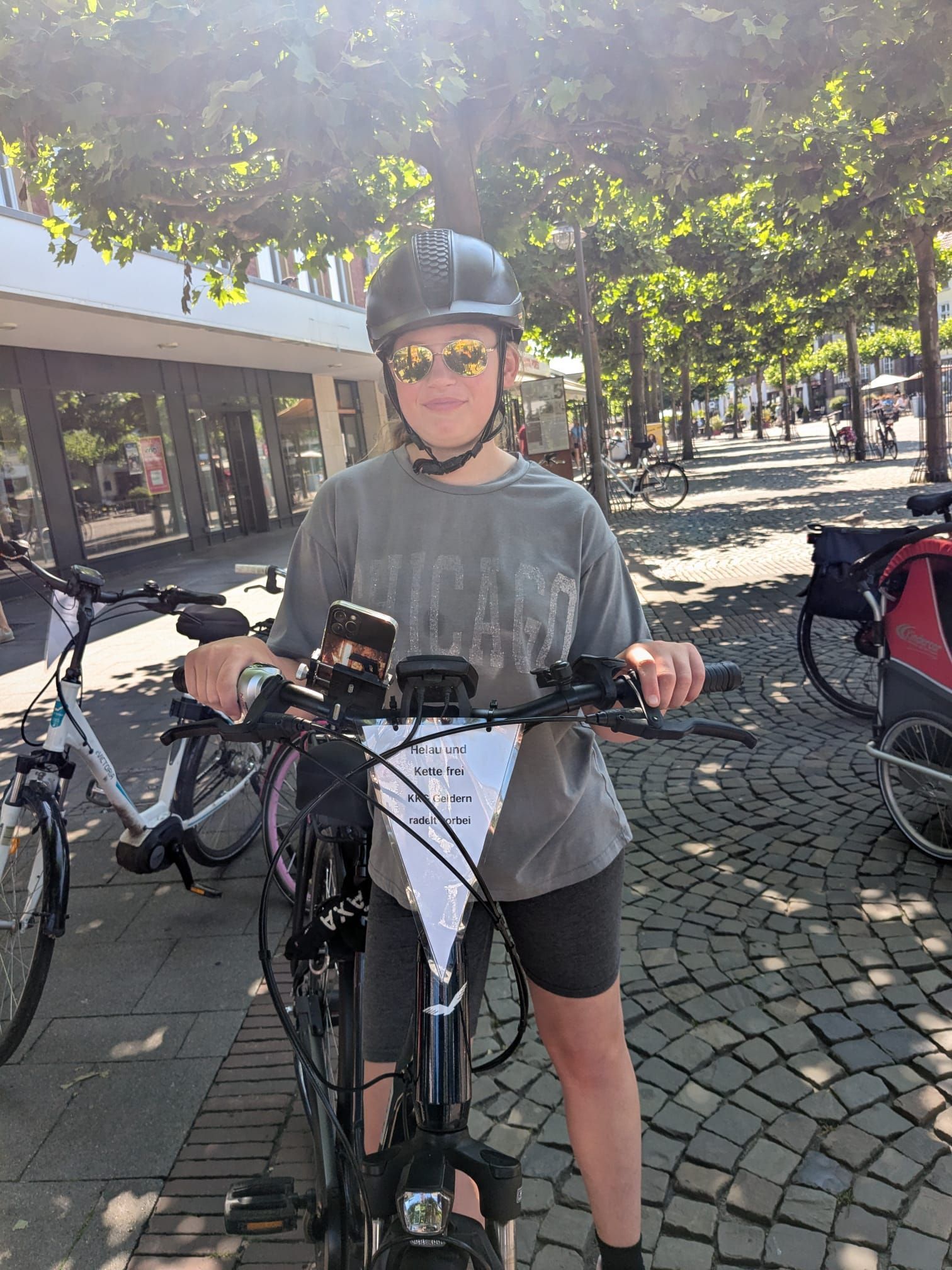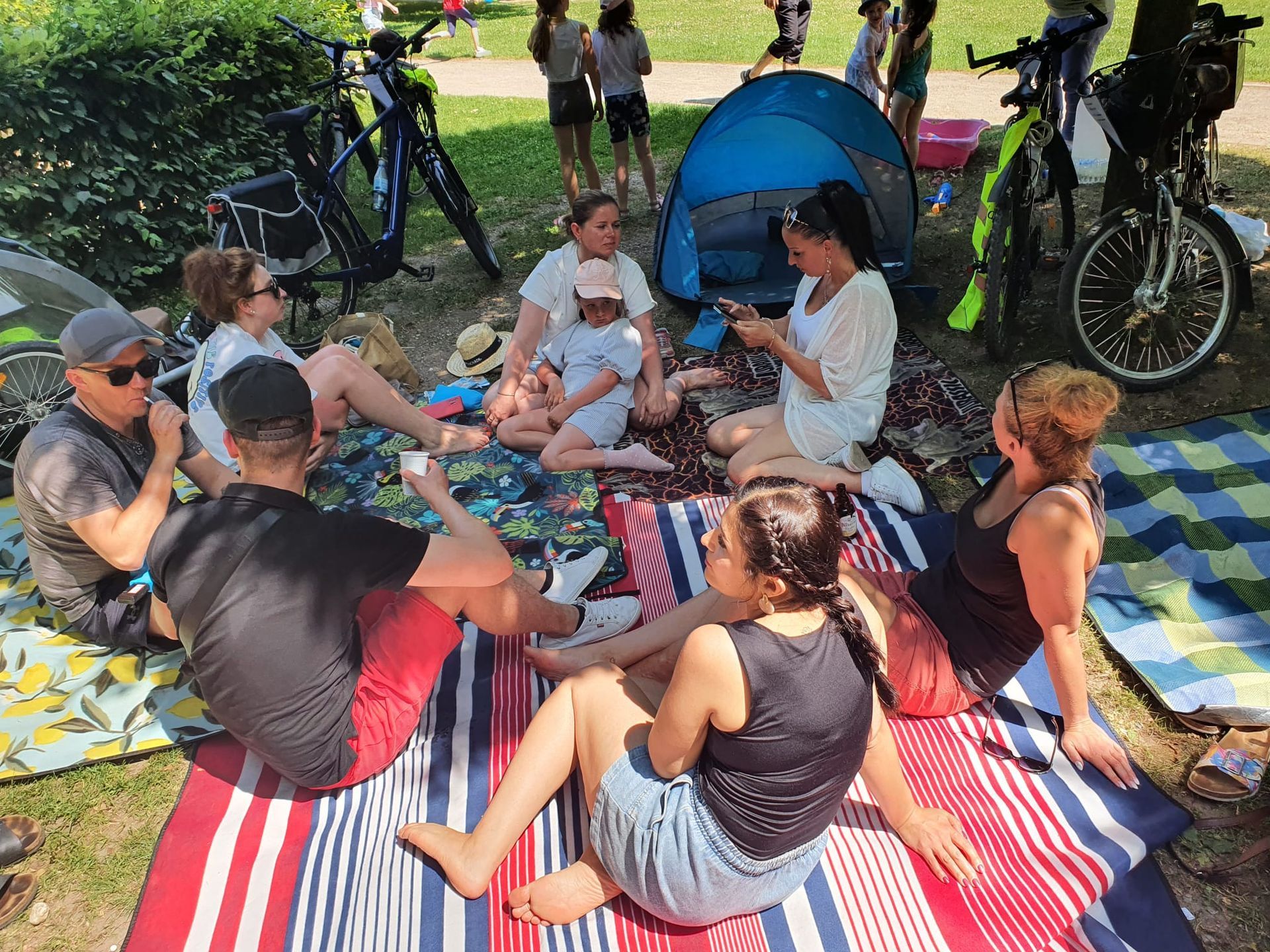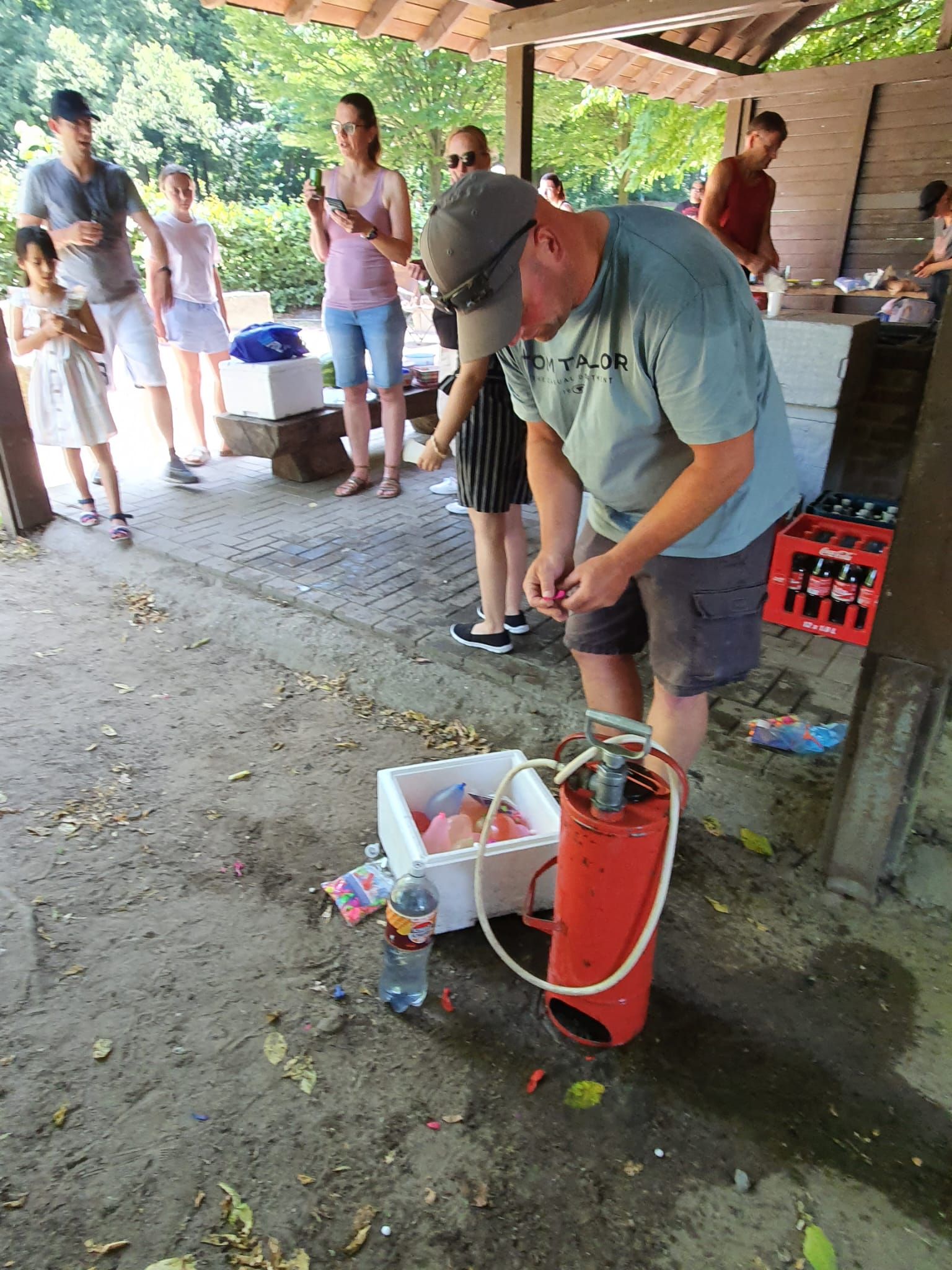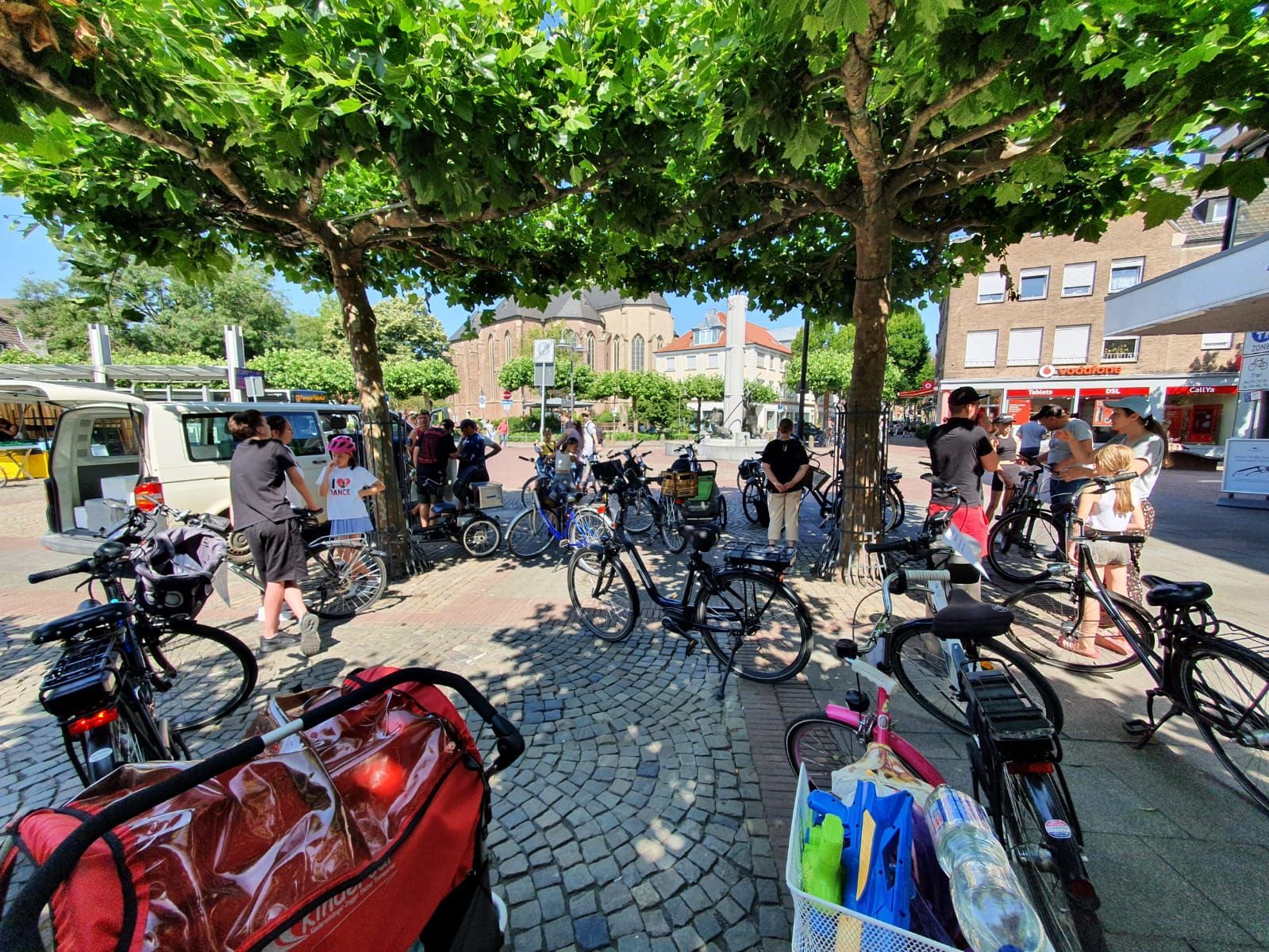 Auch in diesem Jahr haben wir das natürlich mit einer ganz besonderen Fahrradtour verbunden. Wir trafen uns um 11 Uhr am Marktplatz in Geldern, um dann gemeinsam zum Oermter Berg zu fahren; ein erfrischender Zwischenstopp erfolgte bei der amtierenden Kinderprinzessin Zoey II. in Sevelen. Trotz sommerlichen Temperaturen traten wir kräftig in die Pedale und erreichten dann unser Ziel, den Oermter Berg. Rasch wurde das Begleitfahrzeug ausgeladen und unser Grillmeister – zufällig der 1. Vorsitzende – entfachte schnell das Grillfeuer, damit die ausgehungerte Truppe mit leckerem Grillgut versorgt werden konnte. Zudem erhielten wir noch einen alten Feuerlöscher, der zwar schnell mit Wasser gefüllt wurde, aber weniger, um Feuer zu löschen, sondern um die anwesenden Vereinsmitglieder runterzukühlen, dies gelang perfekt, nachdem noch rund 400 Wasserbomben eingesetzt wurden. Es blieb kaum ein Kleidungsstück der vereinseigenen Kinder oder Erwachsenen trocken, wobei die Sonne alles gab, dass alle wieder schnell trocken wurden. Alle Beteiligten hatten einen Riesenspaß. Es wurden Tränen gelacht und vorzüglich gegessen, denn neben dem Gegrillten, gab es viele verschiedene Beilagen, die perfekt das gemeinsame Grillen abrundeten. Nach einem erfolgreichen Sommerfest am Oermter Berg hieß es dann : Ab auf das Fahrrad und wieder nach Geldern radeln.