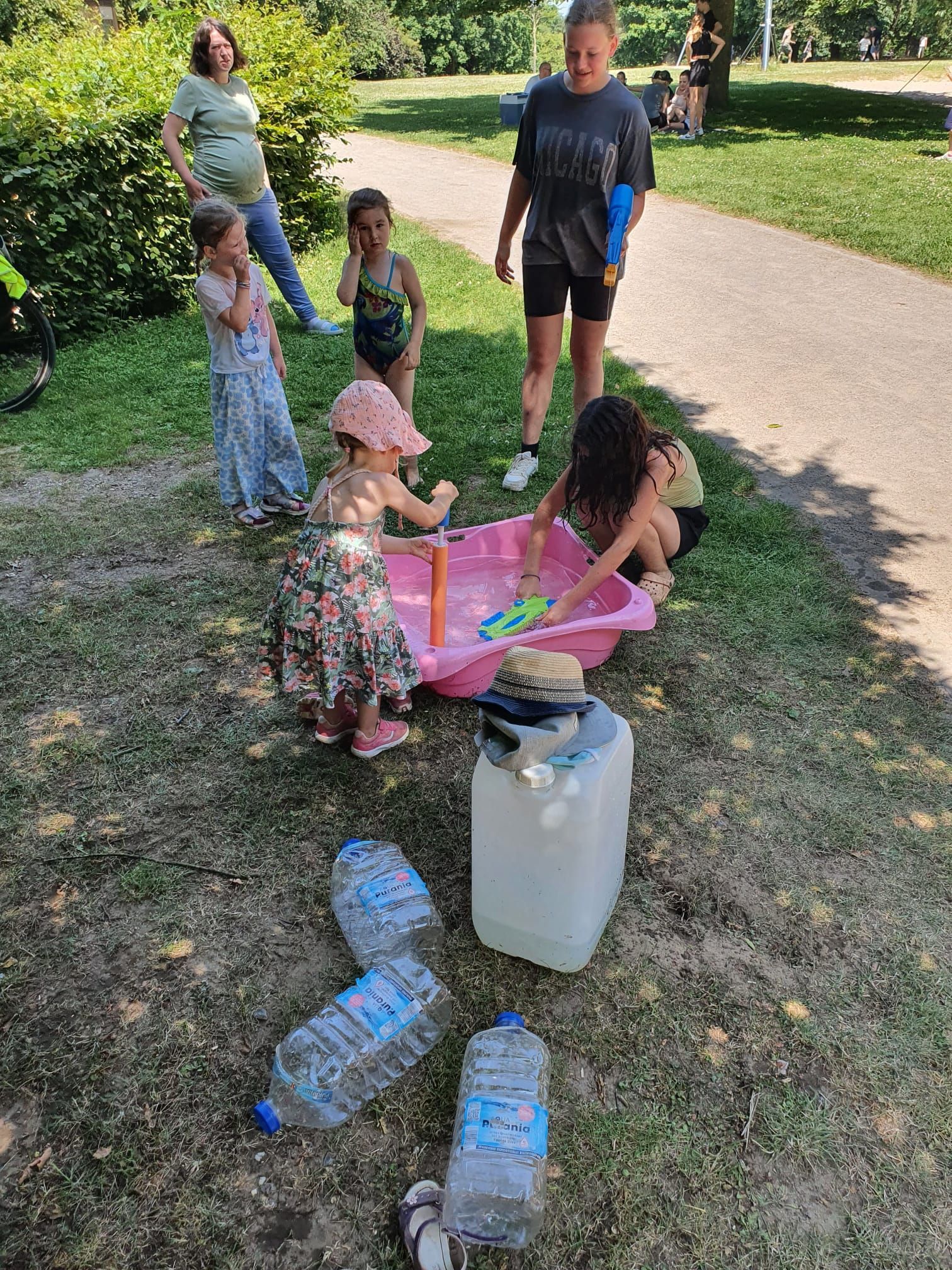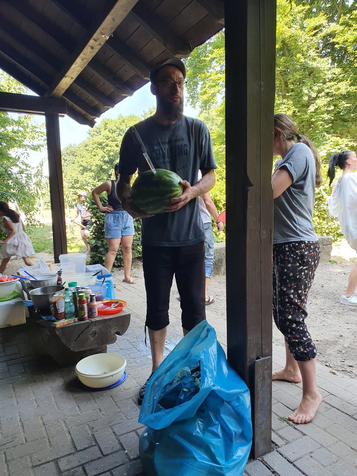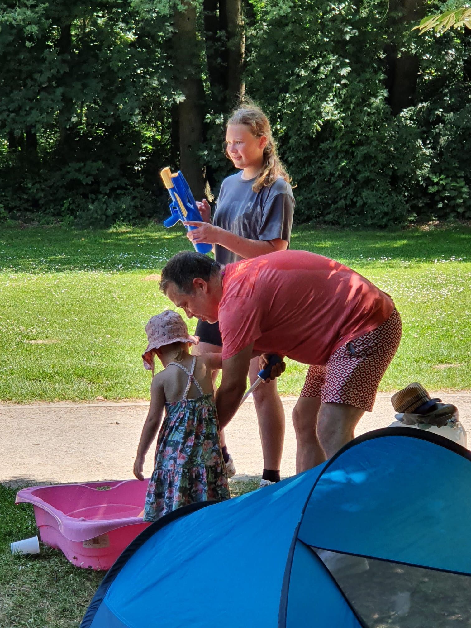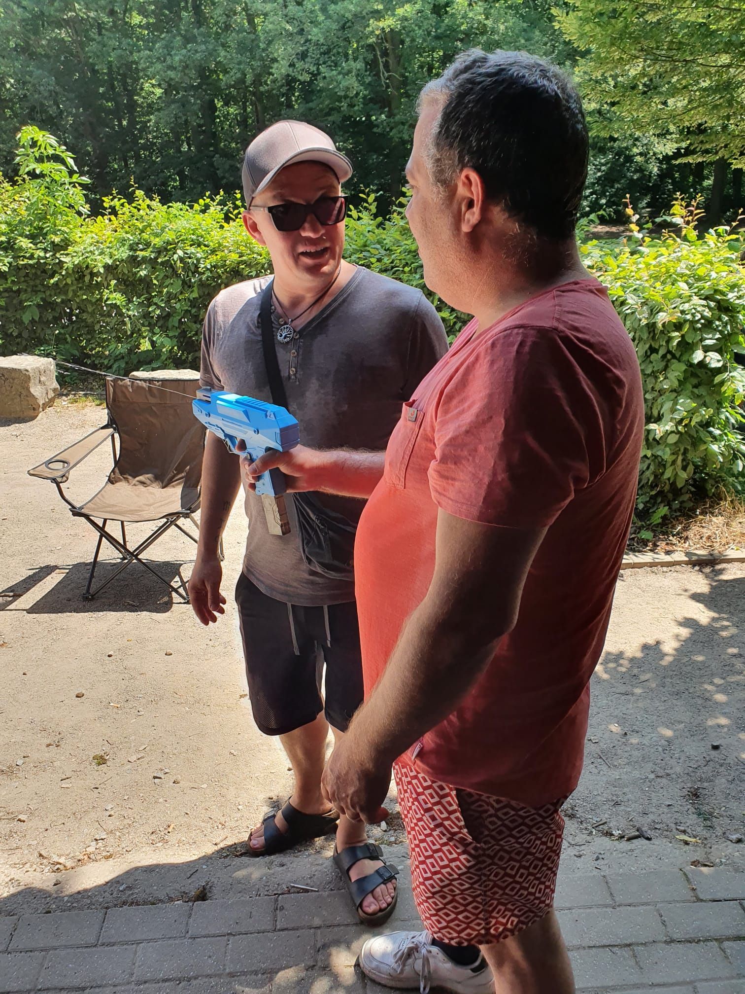 Auch in diesem Jahr haben wir das natürlich mit einer ganz besonderen Fahrradtour verbunden. Wir trafen uns um 11 Uhr am Marktplatz in Geldern, um dann gemeinsam zum Oermter Berg zu fahren; ein erfrischender Zwischenstopp erfolgte bei der amtierenden Kinderprinzessin Zoey II. in Sevelen. Trotz sommerlichen Temperaturen traten wir kräftig in die Pedale und erreichten dann unser Ziel, den Oermter Berg. Rasch wurde das Begleitfahrzeug ausgeladen und unser Grillmeister – zufällig der 1. Vorsitzende – entfachte schnell das Grillfeuer, damit die ausgehungerte Truppe mit leckerem Grillgut versorgt werden konnte. Zudem erhielten wir noch einen alten Feuerlöscher, der zwar schnell mit Wasser gefüllt wurde, aber weniger, um Feuer zu löschen, sondern um die anwesenden Vereinsmitglieder runterzukühlen, dies gelang perfekt, nachdem noch rund 400 Wasserbomben eingesetzt wurden. Es blieb kaum ein Kleidungsstück der vereinseigenen Kinder oder Erwachsenen trocken, wobei die Sonne alles gab, dass alle wieder schnell trocken wurden. Alle Beteiligten hatten einen Riesenspaß. Es wurden Tränen gelacht und vorzüglich gegessen, denn neben dem Gegrillten, gab es viele verschiedene Beilagen, die perfekt das gemeinsame Grillen abrundeten. Nach einem erfolgreichen Sommerfest am Oermter Berg hieß es dann : Ab auf das Fahrrad und wieder nach Geldern radeln.
